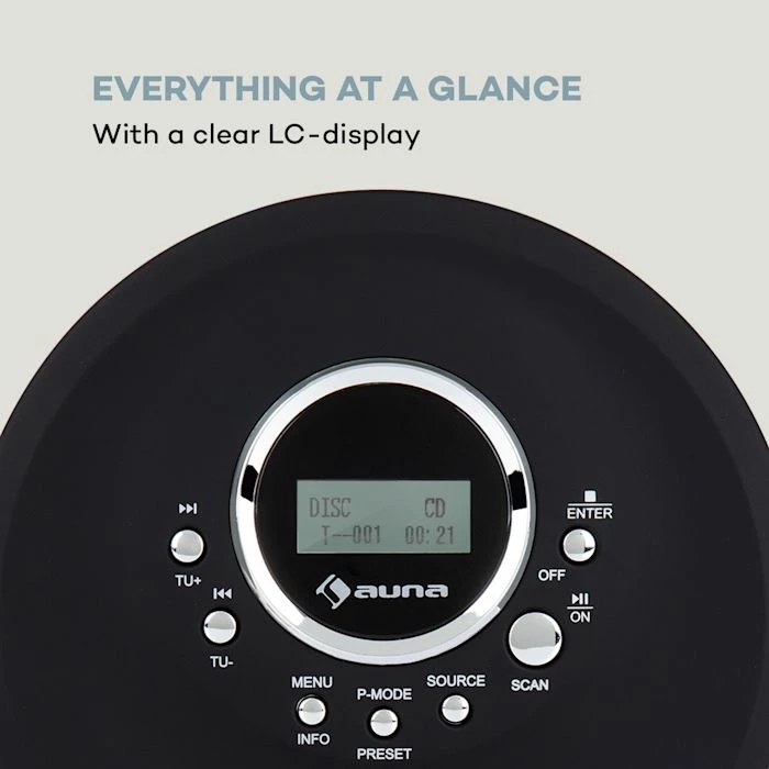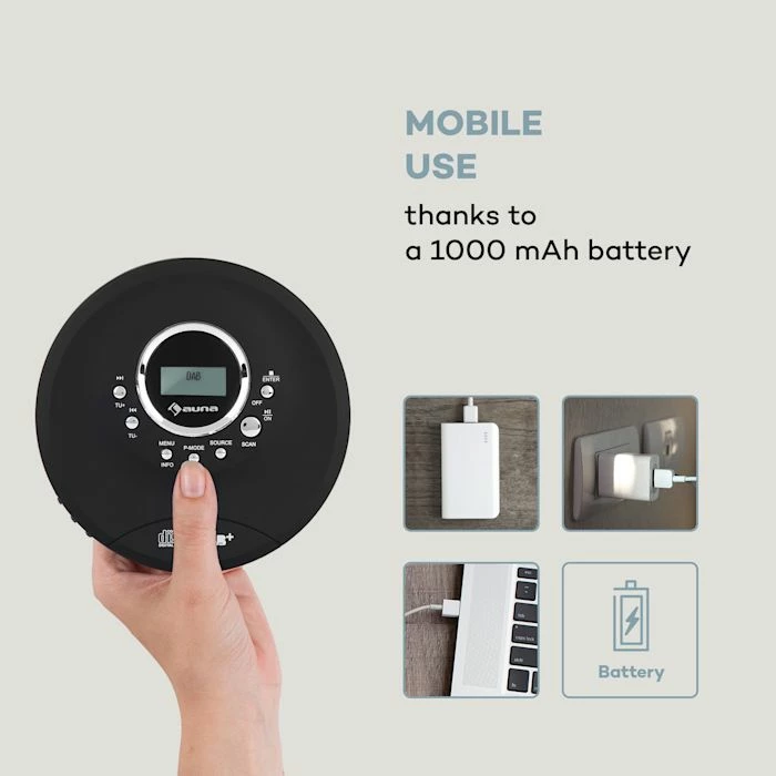 Le meilleur plaisir d’écoute dans un format compact : profitez désormais d’une variété de programmes sans parasite avec le Discman auna CDC 200 DAB + et retrouvez l’utilisation mobile de vos CD favoris.