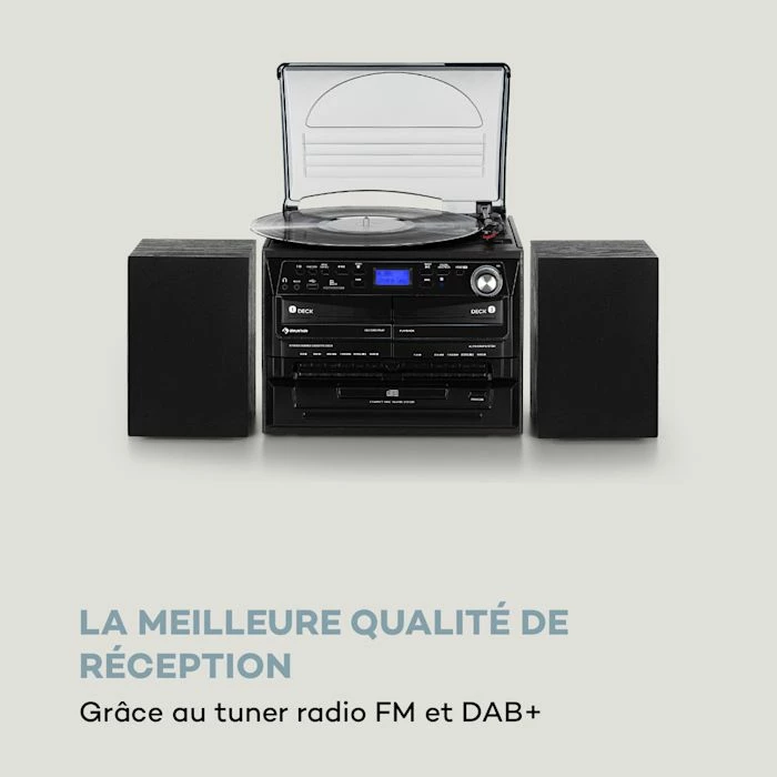 - Système audio polyvalent : chaîne stéréo polyvalente avec deux enceintes séparées