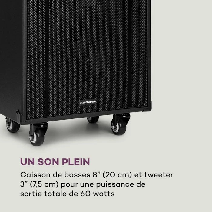 Le système karaoké auna Pro Spin 10 est l’appareil idéal pour tous les amateurs de karaoké grâce à ses roulettes, son grand écran tactile, ses 2 micros UHF sans fil et sa batterie performante.