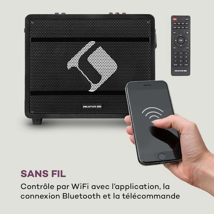 - Système karaoké : 2 microphones UHF sans fil pour une performance sans fil