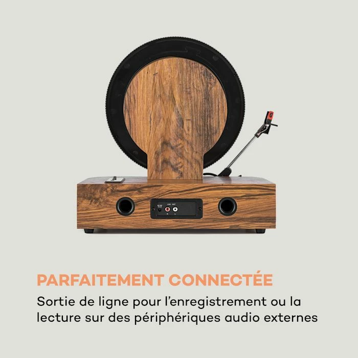 - Design rétro : platine vinyle nostalgique avec platine verticale et entraînement par courroie