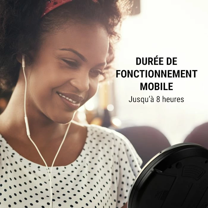 - Puissant : lecteur CD avec fonction programmation, amplification des basses et système anti-choc