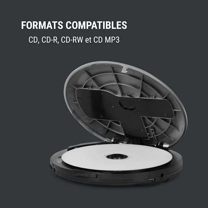 - Formats compatibles : CD, CD-R, CD-RW et MP3-CD